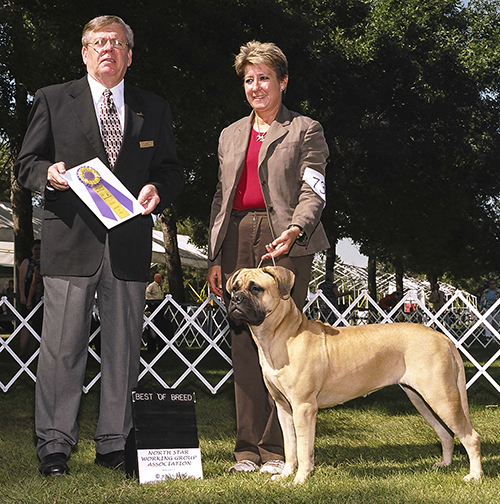 Sherry Wuetherich with Mastiff CH Mystical’s Black Lace At Lakeside MN RN